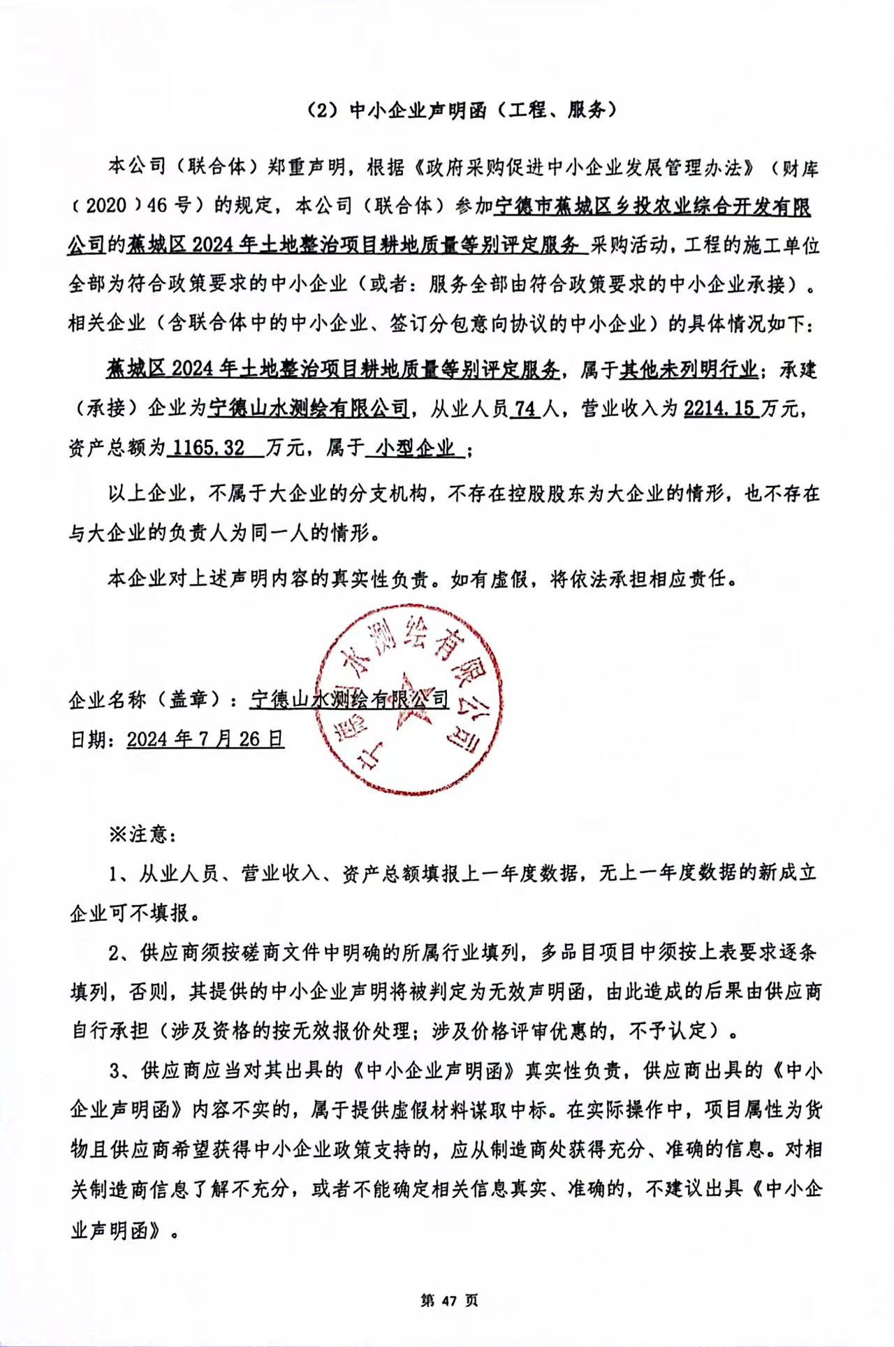 蕉城區2024年土地整治項目耕地質量等別評定服務 |