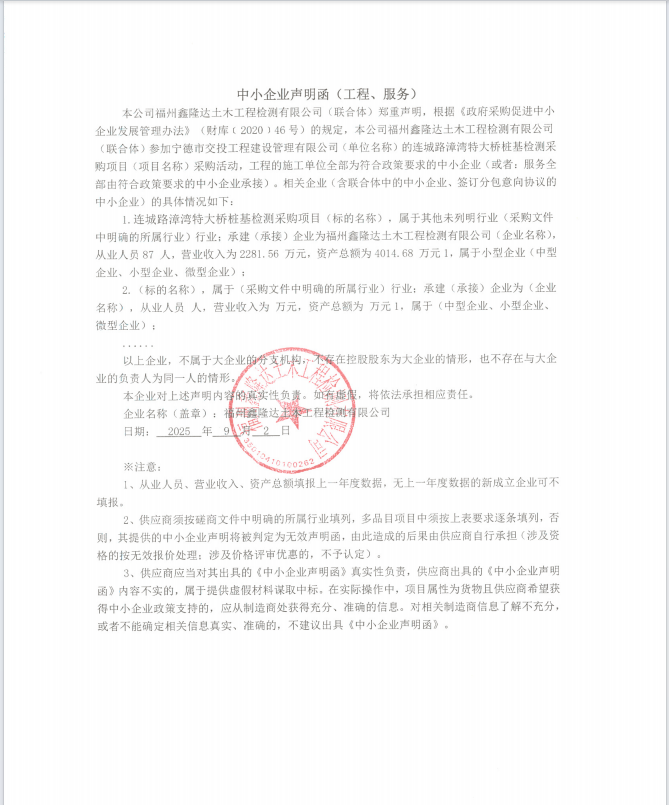服務類(福州鑫隆達土木工程檢測有限公司)